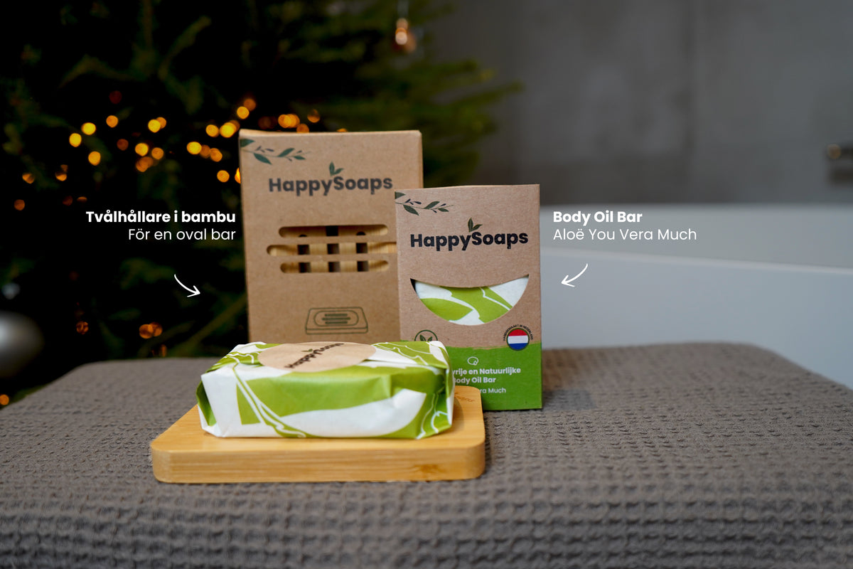 Skäm bort dig själv eller någon annan med det vårdande gåvosetet Body Oil Giftset! Kroppsoljan med aloe vera återfuktar huden och gör den mjuk och smidig – perfekt i vinter. Inkluderar en praktisk och stilren tvålhållare i bambu så att du enkelt kan förvara din bar mellan användning. Självklart 100 % plastfritt och naturligt!