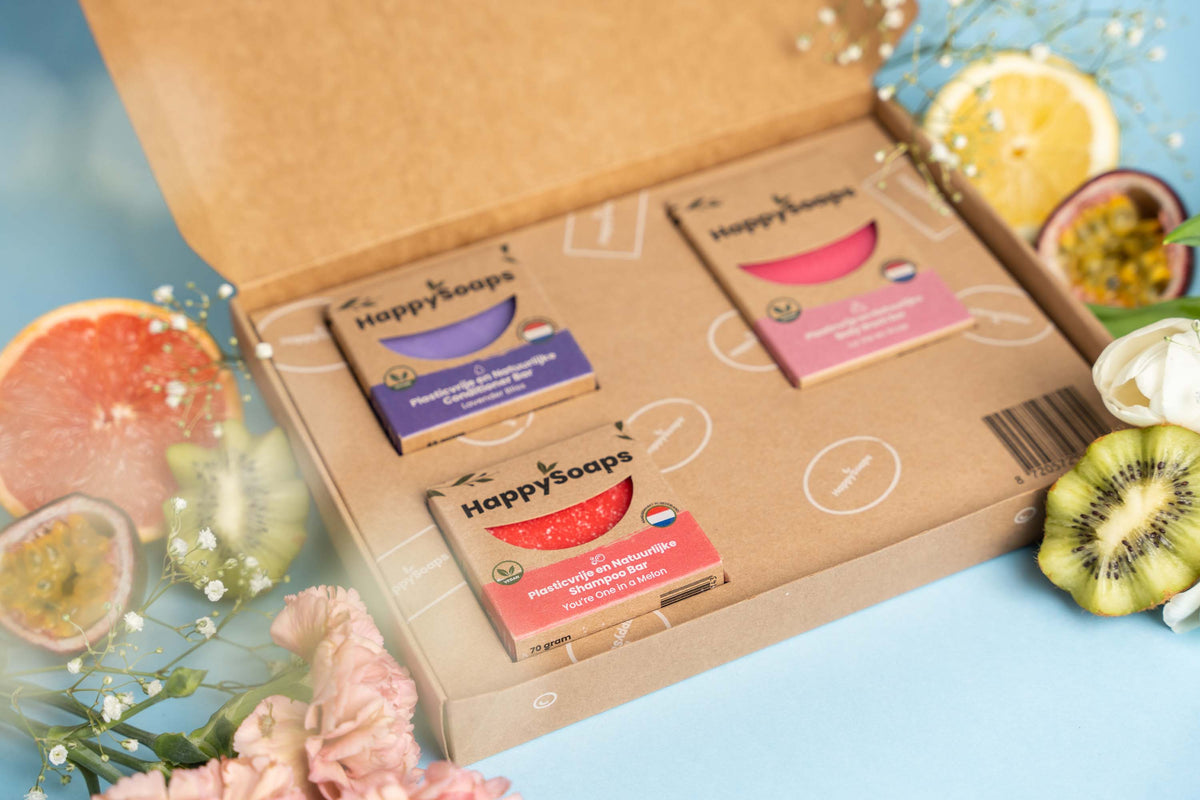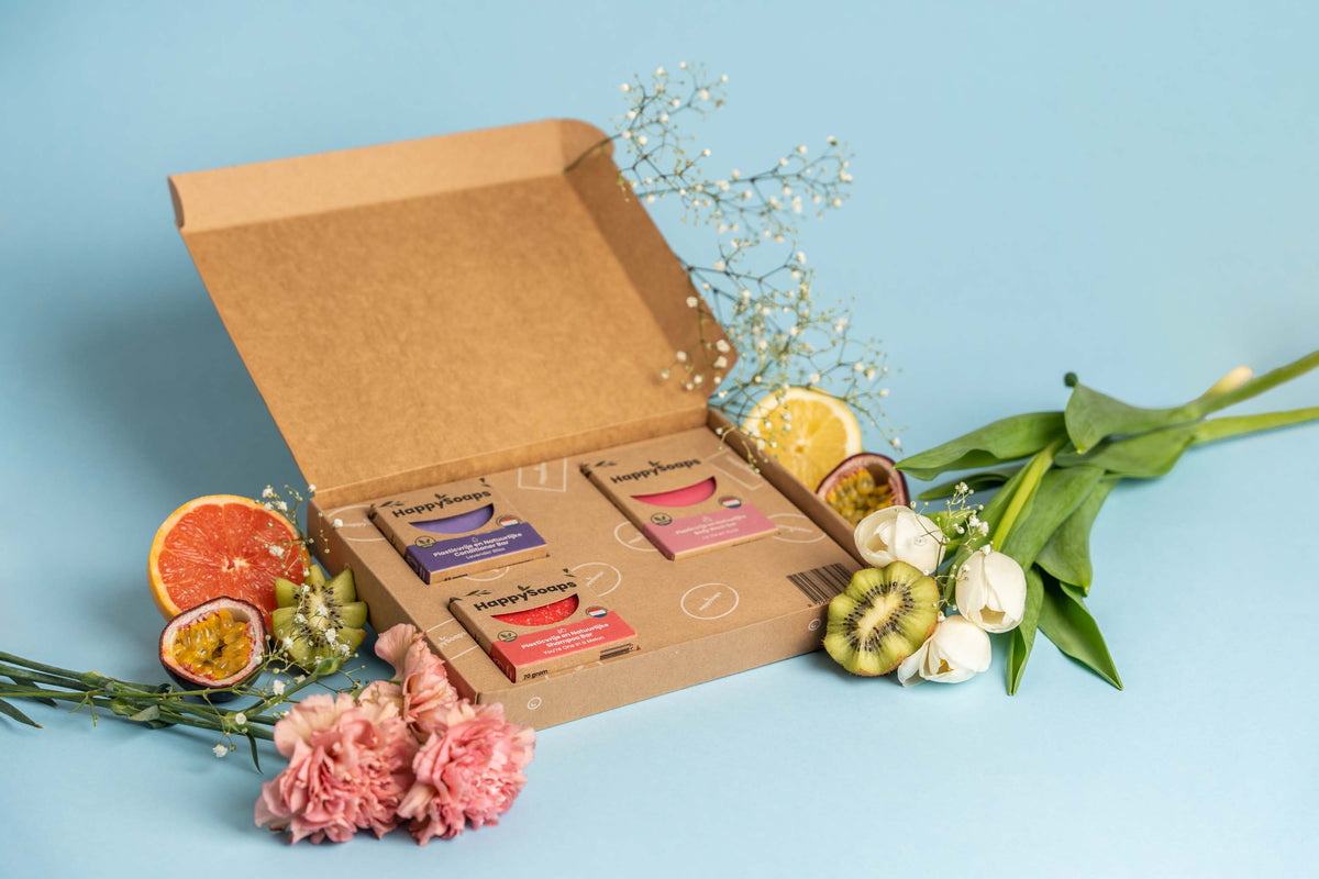 HappySoaps produkter är 100 % plastfria. Dessutom förpackas våra produkter i återvunnen papp. På så sätt används ingen plast under vare sig tillverkning, förvaring eller leverans. Verkligen 100 % plastfritt alltså.