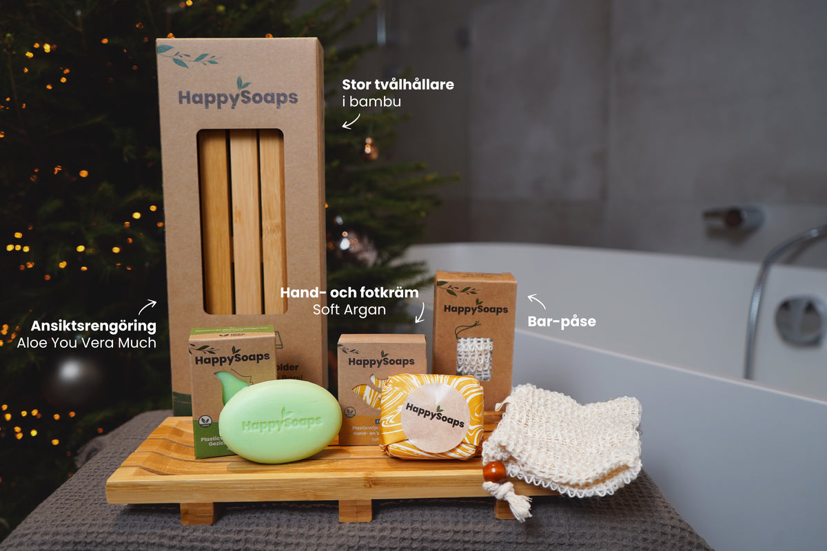 HappySoaps produkter är 100 % plastfria. Dessutom förpackas våra produkter i återvunnen papp. På så sätt används ingen plast under vare sig tillverkning, förvaring eller leverans. Verkligen 100 % plastfritt alltså.